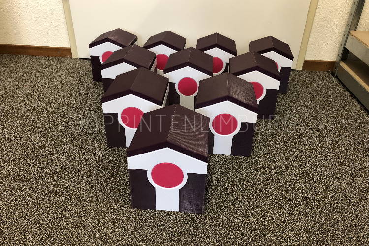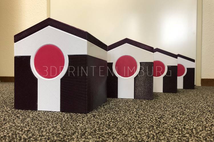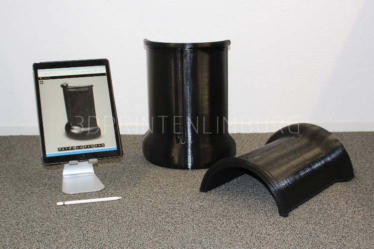 Met onze printers kunnen we objecten printen tot 25cm x 25cm x 25cm. Nog grotere objecten kunnen we veelal in delen printen.